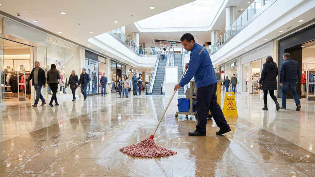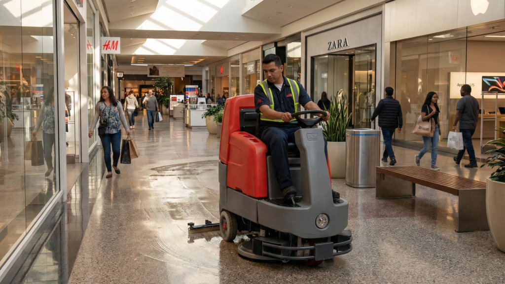 For large spaces, manual mopping is inefficient. Floor scrubber machines reduce cleaning time by up to 70% while delivering consistent results.