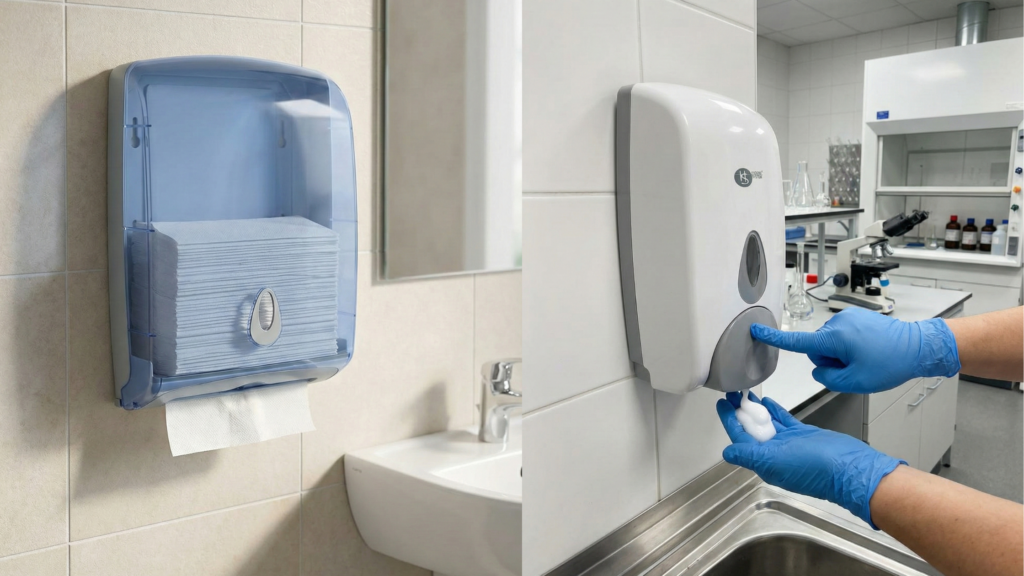 They control the dosage (saving you money on refills) and look sleek. In 2026, touchless automatic dispensers are increasingly becoming the standard expectation for Class-A office buildings and malls.